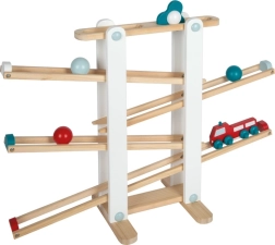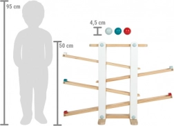 Tato velká dřevěná kuličková dráha Small Foot přináší dětem neustálé překvapení a radost ze sledování kuliček i autíčka při jízdě z patra do patra. Přírodní dřevo v kombinaci s výraznými barvami působí moderně a nadčasově, takže perfektně zapadne do každého dětského pokojíčku. Stabilní zpracování z masivního dřeva zaručuje dlouhou životnost a bezpečné hraní.