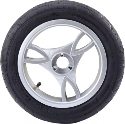 Gumová, vzduchem plněná pneumatika zajišťuje měkkou jízdu, lepší pohlcování nárazů a jistou přilnavost na různých površích.
