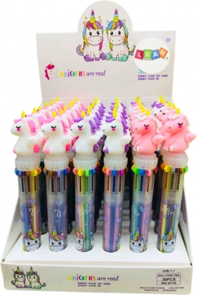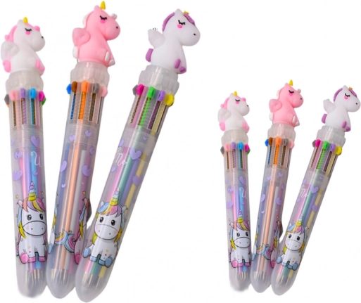 Stylové pero s figurkou jednorožce na vršku promění každodenní psaní v zábavu. Jediným stiskem snadno zvolíte požadovanou barvu, takže není potřeba měnit psací potřeby. Skvělé pro psaní, podtrhávání i vybarvování.