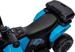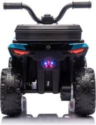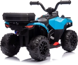 Stylová dětská čtyřkolka na baterii GTS1155 v modré barvě přináší realistický zážitek z jízdy, robustní plastové provedení a velká terénní kola pro zábavu venku i doma. Snadné ovládání přes řídítka, tlačítko start/stop a pohodlné sedlo zaručují bezpečnou a zábavnou jízdu pro malé jezdce.