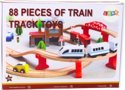 Vláčková souprava obsahuje 22 dřevěných kolejnic, které lze snadno spojovat v různé kombinace a vytvářet tak složité trasy. Děti mohou experimentovat a budovat dlouhé, klikaté železniční linky, které vedou vlaky přes celé město.