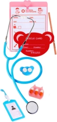 - Stetoskop, teploměr (4 teploty), stříkačka, pinzeta, kleště, neurologické kladívko, náplasti, obvaz, zubní pasta, kartáček, tubička s „lékem“, zubní zrcátko, „vrtačka“, model čelisti + 9 zubů, brýle, identifikátor lékaře, šňůrka, karta pacienta, tužka, 3 druhy „tabletek“, visačka ordinace (otevřeno/zavřeno), plyšový pacient, červená lékárnička