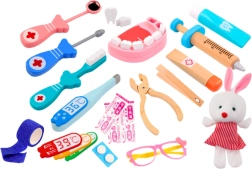 Tato bohatě vybavená lékařská sada je ideální pro malé doktory a zubaře. Děti si bezpečně vyzkouší měření teploty, vyšetření zubů, podání "léků" nebo zapisování do karty pacienta. Realistické provedení nástrojů přináší autentický zážitek a rozvíjí jemnou motoriku i komunikaci.