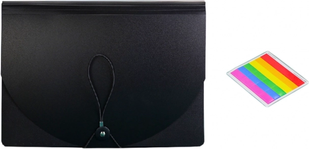 Stylový a funkční organizér na dokumenty A4 s 24 barevně odlišenými přihrádkami pro rychlé třídění a přehled. Vyroben z pevného, nedeformovatelného materiálu, který chrání papíry před poškozením. Bezpečné uzavření na elastickou gumičku a možnost popisovat jednotlivé kapsy pro snadné vyhledávání. Ideální do kanceláře, školy i domácnosti.