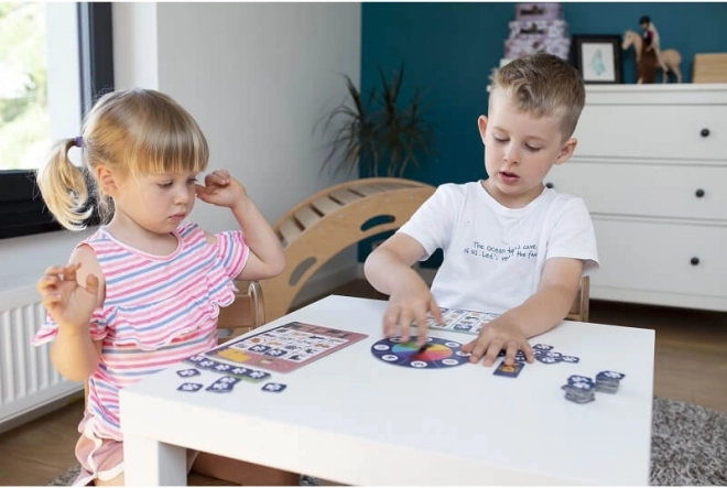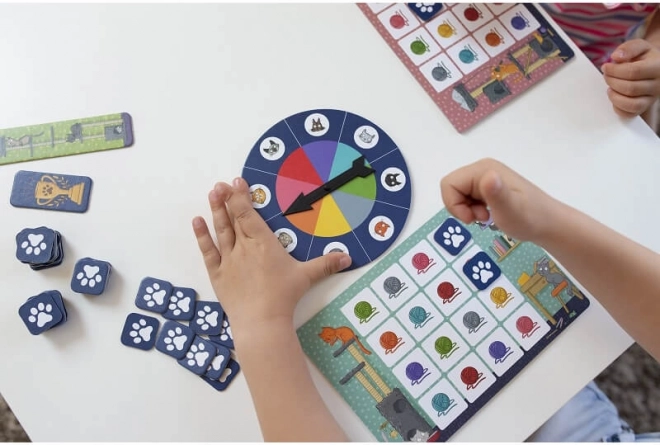 Objevte chytré bingo s tématem koček, které propojuje učení a zábavu. Hráči postupně roztáčejí ruletu, hledají odpovídající barvy a obrázky a umisťují žetony na svou herní desku. Cílem je vytvořit řadu čtyř žetonů vertikálně, horizontálně nebo diagonálně a označit ji výherním proužkem.