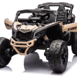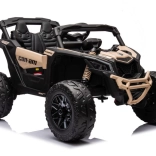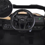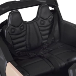 Terénní buggy pro malé dobrodruhy je postavené na pohonu 4x4 se čtyřmi silnými motory a tlumiči vpředu i vzadu. Měkké EVA pneumatiky skvěle tlumí nerovnosti a spolu s plynulým startem a brzdou po uvolnění pedálu dělají z jízdy bezpečný zážitek. O komfort se stará ergonomicky tvarované sedadlo z eko kůže a pětibodové pásy.