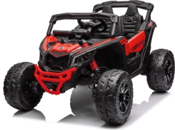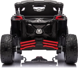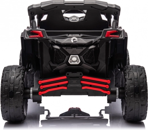 Silné dětské buggy 4x4 s výkonem 800 W nabídne plynulý rozjezd, čtyři motory 24 V/200 W, akumulátor 24 V 5 Ah a rodičovský 2,4 GHz dálkový ovladač. Komfort zajišťuje sedadlo z eko kůže, pětibodové pásy, měkká EVA kola a odpružení vpředu i vzadu. Pro zábavu jsou tu LED světla, zvuky motoru a hudba z panelu s USB/MP3.