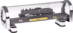Průhledná válcová tuba z pevného plastu chrání model před prachem a nárazy a díky stříbrným rámečkům působí luxusně.