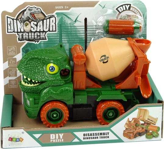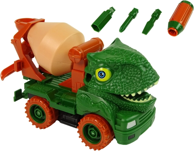 Zábavná dětská betonička v designu dinosaura pro malé stavitele. Auto lze pomocí přiloženého šroubováku snadno rozebrat a zase složit, což rozvíjí jemnou motoriku, logické myšlení a kreativitu. Díky setrvačníku stačí natáhnout dozadu a vyrazit. Otočný buben a realistická dinosauří hlava s detaily zaručí fantazijní hru na stavbě i v pravěkém parku.