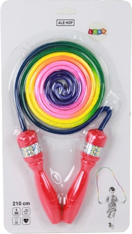 Veselé duhové švihadlo s pohodlnými červenými rukojeťmi přináší dětem spoustu zábavy a zároveň podporuje jejich zdravý pohyb. Pravidelné skákání posiluje svaly nohou a paží, zlepšuje koordinační schopnosti a rozvíjí kondici. Díky atraktivním barvám a příjemnému úchopu si švihadlo děti rychle oblíbí.