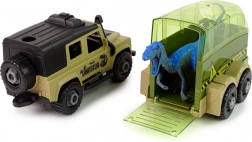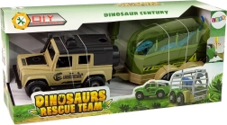 Terénní auto, přívěs (transporter), figurka dinosaura, šroubovák