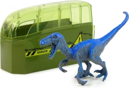 Uzavíratelný zelený přívěs s průhledným víkem udrží dinosaura v bezpečí a přidá do hry dobrodružnou atmosféru.