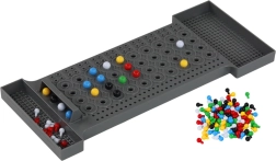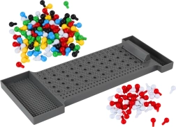 Odolná plastová deska s mřížkou a přihrádkami na kolíčky zajišťuje pohodlnou hru i snadnou organizaci barev.