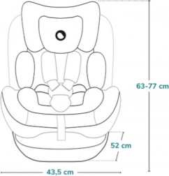 Snadná instalace a každodenní komfort – montáž pomocí ISOFIX a Top Tether s barevnými indikátory správného upevnění. Otočná základna 360° EasyTurn šetří záda rodiče a usnadňuje připoutání. 4 stupně sklonu v obou směrech a integrované nastavení výšky opěrky hlavy s pásy zajistí ideální polohu pro spánek i bdění.