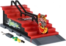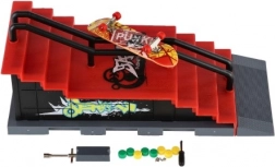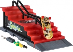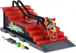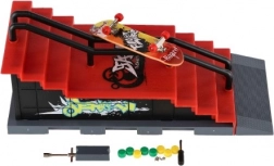 Tento prstový skatepark přináší realistický zážitek z fingerboardingu v kapesní velikosti. Robustní plastová konstrukce se schodištěm, rampou a kovovým zábradlím je jako stvořená pro grindy, ollie a další triky. Součástí balení je fingerboard o délce 8 cm a drobné nářadí a díly pro šroubovací úpravy.