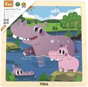 Dřevěné puzzle od Viga, ideální pro děti doma i ve školce, nabízí 9 tematických dílků pro zábavné a bezpečné skládání.