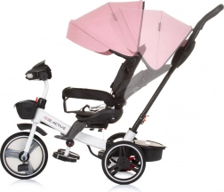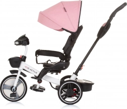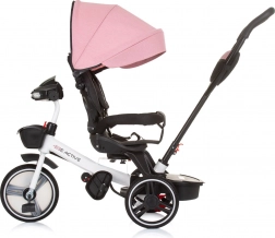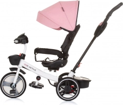 Tato univerzální tříkolka Chipolino Be Active 2v1 Pink Linen roste spolu s dítětem: nejprve ji pohodlně ovládáte vy pomocí rodičovské rukojeti, později dítě přechází na samostatné šlapání a řízení. O komfort se stará měkké polstrování, nastavitelné opěrky nohou a skládací stříška se sluneční clonou, která chrání před počasím.
