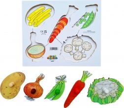 Toto dřevěné deskové puzzle je navrženo tak, aby dětem představilo zeleninu nejen v celku, ale i po nakrájení. Děti si pomocí kolíčků snadno uchopí jednotlivé díly a budou se učit přiřazovat správnou zeleninu k jejím řezaným verzím. Vlastnosti produktu: