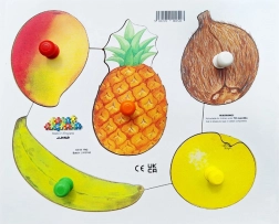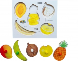- Složení motivů z ovoce jako mango, ananas, citron, kokos a plantain ukazuje dětem jejich skutečný vzhled pod slupkou.