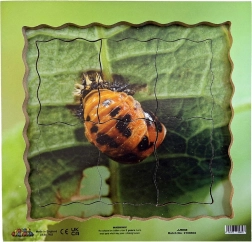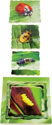 Objevte netradiční vzdělávací puzzle, které zaujme děti i dospělé. Toto vrstvené puzzle obsahuje čtyři fáze vývojového cyklu berušky: vajíčka, larvu, kuklu a dospělou berušku, což představuje skvělý způsob, jak poznávat přírodu hravě.