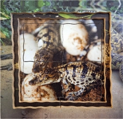 Díky autentickým fotografiím každé vývojové fáze nabízí puzzle reálný pohled na život krokodýla.