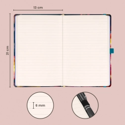 Linkované listy na žlutém papíře poskytují příjemný kontrast a komfortní čitelnost. Kompaktní rozměr 13 × 21 cm se skvěle vejde do kabelky či batohu, přesto nabízí dostatek prostoru pro 172 stran poznámek, úkolů i kreativních nápadů.
