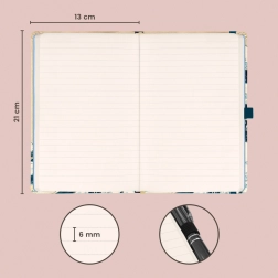 Oceníte promyšlené detaily pro každodenní používání: gumičku pro bezpečné uzavření, poutko na tužku a vnitřní kapsu na vizitky či drobnosti. Žlutý papír je příjemný pro oči a 172 stran poskytne dostatek prostoru na celý rok inspirace.