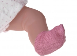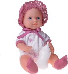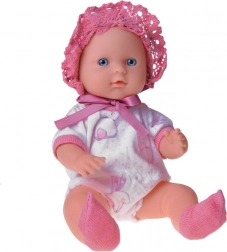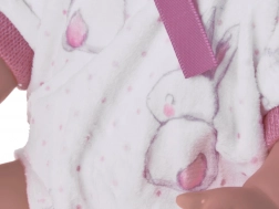 Panenka má půvabné modré oči, růžovou čepičku, bílo‑růžový obleček s roztomilým motivem králíčka a růžové botičky/ponožtičky. Ruce a nohy jsou pohyblivé, tělo je z odolného plastu s příjemným povrchem, což zajišťuje snadnou údržbu a dlouhou životnost.