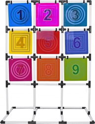 Velká mřížka 3×3 s kontrastními čísly motivuje ke skórování a učení čísel, ideální pro soutěže a týmové hry.