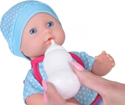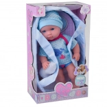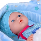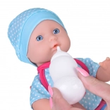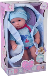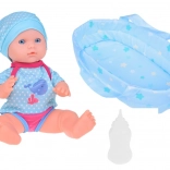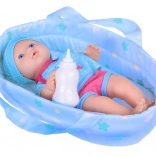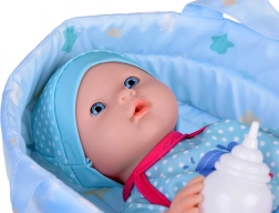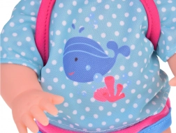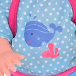 Tento set obsahuje vše, co malí rodiče potřebují k péči o své panenky - panenku s realistickými rysy, nosič pro snadné přenášení a láhev na krmení. Panenka má modré oči a je oblečena v modrém oblečku s motivem velryby, což dodává hře na péči o dítě autentičnost. Po napití z láhve panenka umí 'čůrat', což z ní činí nejen hračku, ale i zábavný nástroj pro učení malých dětí.
