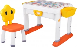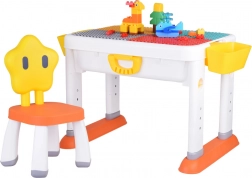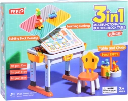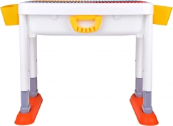 Multifunkční dětský stůl 3v1 s výškově nastavitelnými nohami, oboustrannou deskou pro kostičky i psaní a praktickým úložným prostorem. V balení je i pohodlná židlička se stabilními nohami. Ideální pro hraní, učení i stolování – vše na jednom místě. Oboustranný blat, regulovatelná výška, úložný box, 55 kostiček v sadě a protiskluzové prvky pro bezpečné používání.