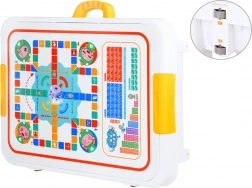 - Oboustranná deska: výstupky pro kostky / hladká strana pro psaní a hry