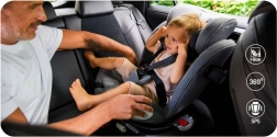 Možnost otáčení o 360° umožňuje pohodlný přístup k dítěti, ať už sedí v jakémkoliv směru. To usnadňuje umisťování dítěte do sedačky a jeho vyjímání.