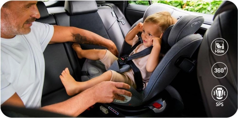 Jedinečnou funkcionalitou autosedačky je otočná základna, umožňující snadné nastavení proti směru jízdy (RWF) i po směru jízdy (FWF). Sedačka je vybavena systémem ISOFIX s indikátorem správné montáže a Tether páskem pro ještě větší bezpečnost.