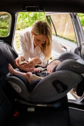 MoMi EMI nabízí otáčení o 360°, což umožňuje snadné nasazování proti i po směru jízdy. Zahrnuje boční výztuhy SIPS, 11 poloh opěrky hlavy a 6 úrovní sklonu pro maximální pohodlí a bezpečí. Další jistotu poskytuje upevňovací systémy TOP TETHER.