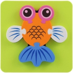 Pěnové puzzle rozvíjejí jemnou motoriku a prostorové vnímání díky možnosti skládat dílky do tvaru rybky.