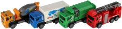 Vyberte si ze čtyř typů nákladních aut, včetně cementového mixeru, popelářského vozu, hasičského auta a přepravního vozu.