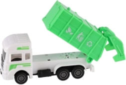 Obsahuje popelářský vůz, cisternu, zametač ulic a sklápěč. Děti mohou měnit role během hry.