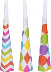 Vyzdobte svou párty těmito barevnými trumpetkami a přidejte tak více šarmu a veselí. Perfektní pro oslavy narozenin, svátků nebo jiných speciálních příležitostí.