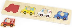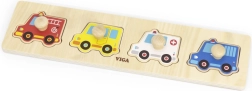 Tato kvalitní dřevěná vkládačka se čtyřmi vozidly (hasičské auto, taxi, sanitka a policejní auto) je skvělou volbou pro první logické hry. Dílky s praktickými knoflíkovými úchyty usnadňují manipulaci a povzbuzují děti k opakovanému vkládání a objevování.