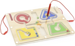 Zábavná a vzdělávací hračka pro nejmenší: dřevěné magnetické bludiště s barevnými kuličkami a magnetickým perem. Podporuje jemnou motoriku, koordinaci oko–ruka a učení barev. Ideální od 18 měsíců.