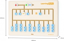 Dřevěná počítací tabule VIGA přináší dětem zábavné a vizuálně přehledné seznámení s čísly a jednoduchými příklady. Interaktivní princip přesouvání číslic a znaků posiluje koncentraci, koordinaci oko–ruka a přirozenou zvědavost k objevování matematiky.