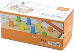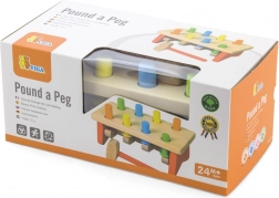 Tato kvalitní dřevěná zatloukačka VIGA přináší dětem radost z objevování a učení. Barevné kolíky se snadno vkládají do otvorů a pomocí dětského kladívka se zatloukají skrz lavici – hra, která zábavnou formou posiluje motorické dovednosti a trpělivost.