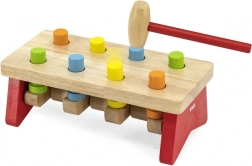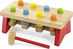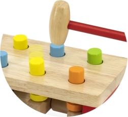 Stabilní lavice, pevné kolíky a příjemně tvarované kladívko z přírodního dřeva zajišťují bezpečnou a dlouhotrvající zábavu. Hračka zároveň podporuje rozpoznávání barev a učení příčin a následků.