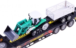 Nízkoložný návěs bezpečně přepraví traktor s přívěsem. Detailní zpracování a robustní plast zajistí dlouhou životnost při hraní.