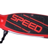 Užijte si zábavnou a bezpečnou jízdu s elektrickou koloběžkou pro děti. Barevné LED pásky po stranách desky a bílé přední světlo zvyšují viditelnost, zatímco široká protiskluzová plocha s nápisem SPEED přidává stabilitu. Stačí zmáčknout spoušť na pravé rukojeti a můžete plynule vyrazit – po jejím uvolnění se aktivuje elektrická brzda.