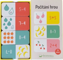 Tato chytrá a zábavná hra od Svojtka & Co. rozvíjí u dětí klíčové schopnosti: od základů aritmetiky až po logiku a strategické uvažování. Princip domina děti motivuje k hledání správných dvojic – spojují příklad s odpovídajícím množstvím ovoce.