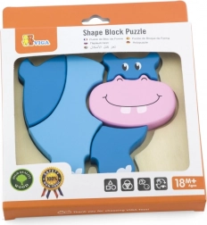 Tato roztomilá dřevěná skládačka ve tvaru hrocha je ideální první puzzle pro nejmenší. Pět barevných dílků se vkládá do vyfrézovaného tvaru v pevné dřevěné podložce, takže se děti učí správnému umístění a rozpoznávání tvarů.