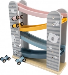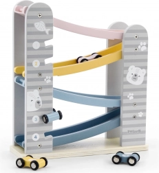 Závodní dráha je skvělá hračka pro každého malého fanouška závodů. Jedinečný design a odolnost dělají z ní ideální doplněk do každého dětského pokoje. Bezpečnost zajišťují zaoblené hrany a pastelové barvy zaujmou každé dítě.