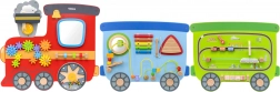 Každý vagónek nabízí jiný typ aktivity: červená lokomotiva s převody, mlýnským kolečkem a zrcátkem, modrý vagon se xylofonem a korálkovým labyrintem a zelený vagon s posuvnou vláčkodráhou a otočnými kostkami s motivy světových míst. Díky rozmanitosti prvků se děti nenudí a přirozeně rozvíjejí schopnosti v duchu Montessori.
